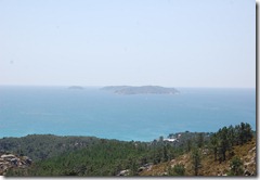 Veinte km mas adelante paramos en O Grove. Por mas que lo intento no encuentro ninguna similitud con el pueblo que vi hace……….muchos años.Y no lo digo ya solamente por el tamaño, todo es diferente. Preguntamos en Turismo lugares para visitar, y nos decidimos por subir al mirador de Siradella. Esta a tres km del centro, y ya ahí aprovechamos para comer algo de lo que hemos comprado antes. Ya cenaremos bien.